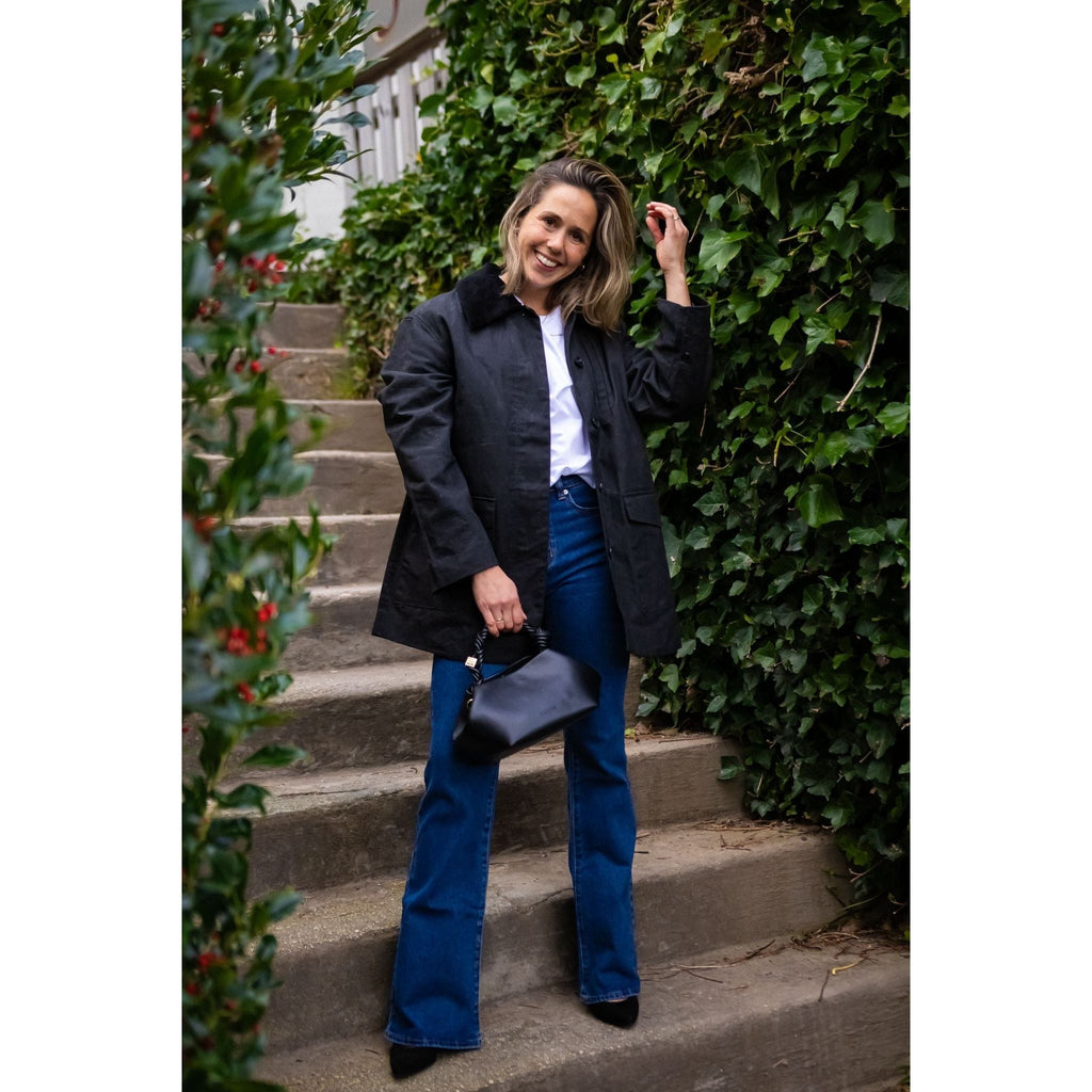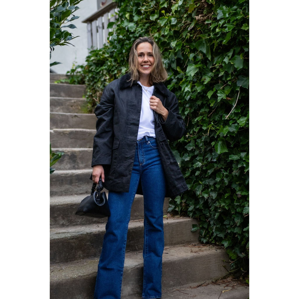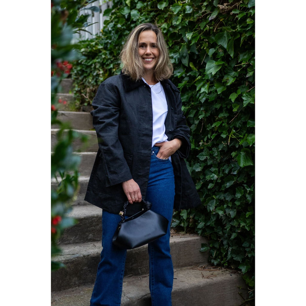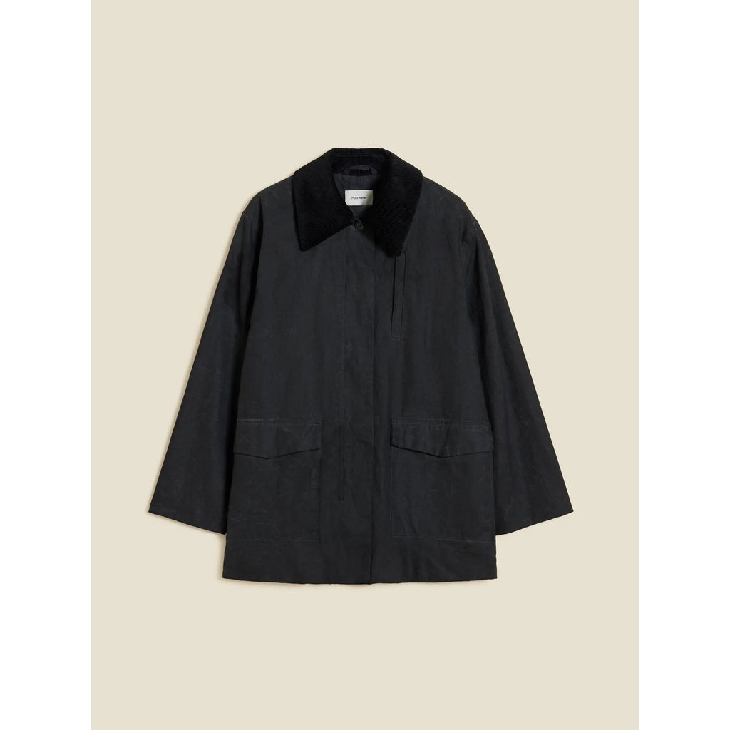 Dino-jakken er eit arv-inspirert design og er laget av eit klassisk vokset stoff med avtakbar kordfløyelkrage. Den har senkede skuldre, klafflommer og skjult foran.