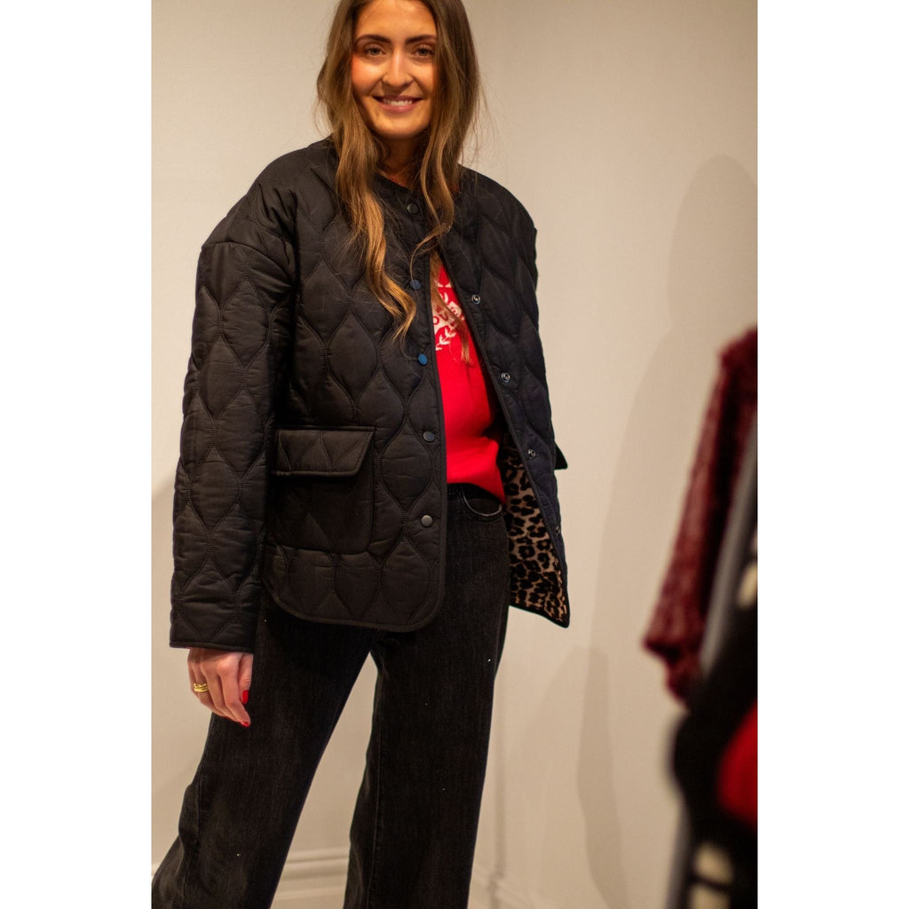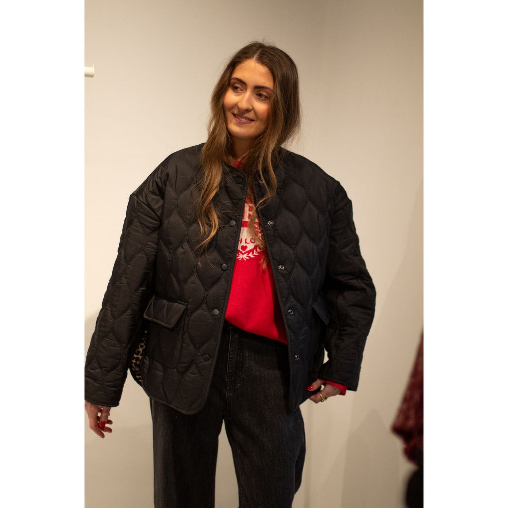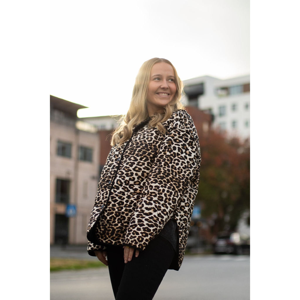 Kan brukes begge veier, både med leopardprint og vanlig svart.