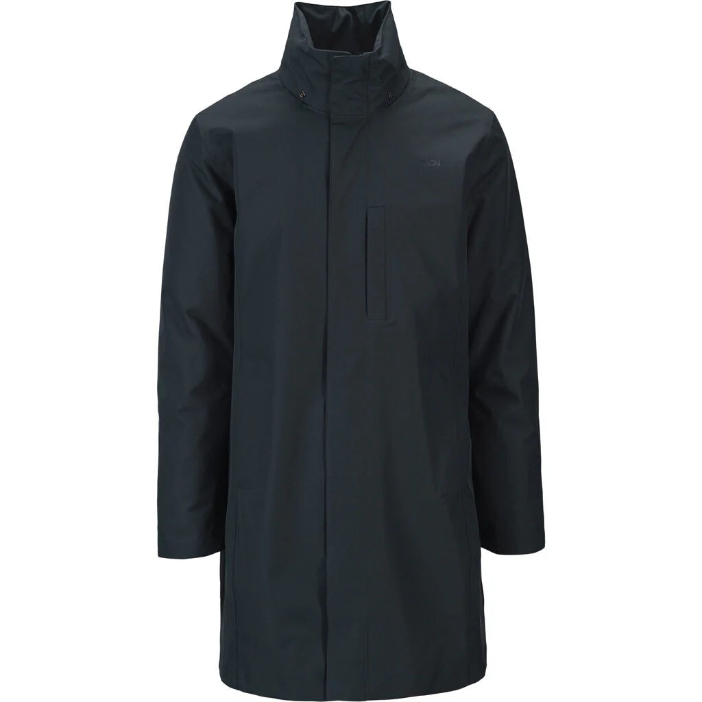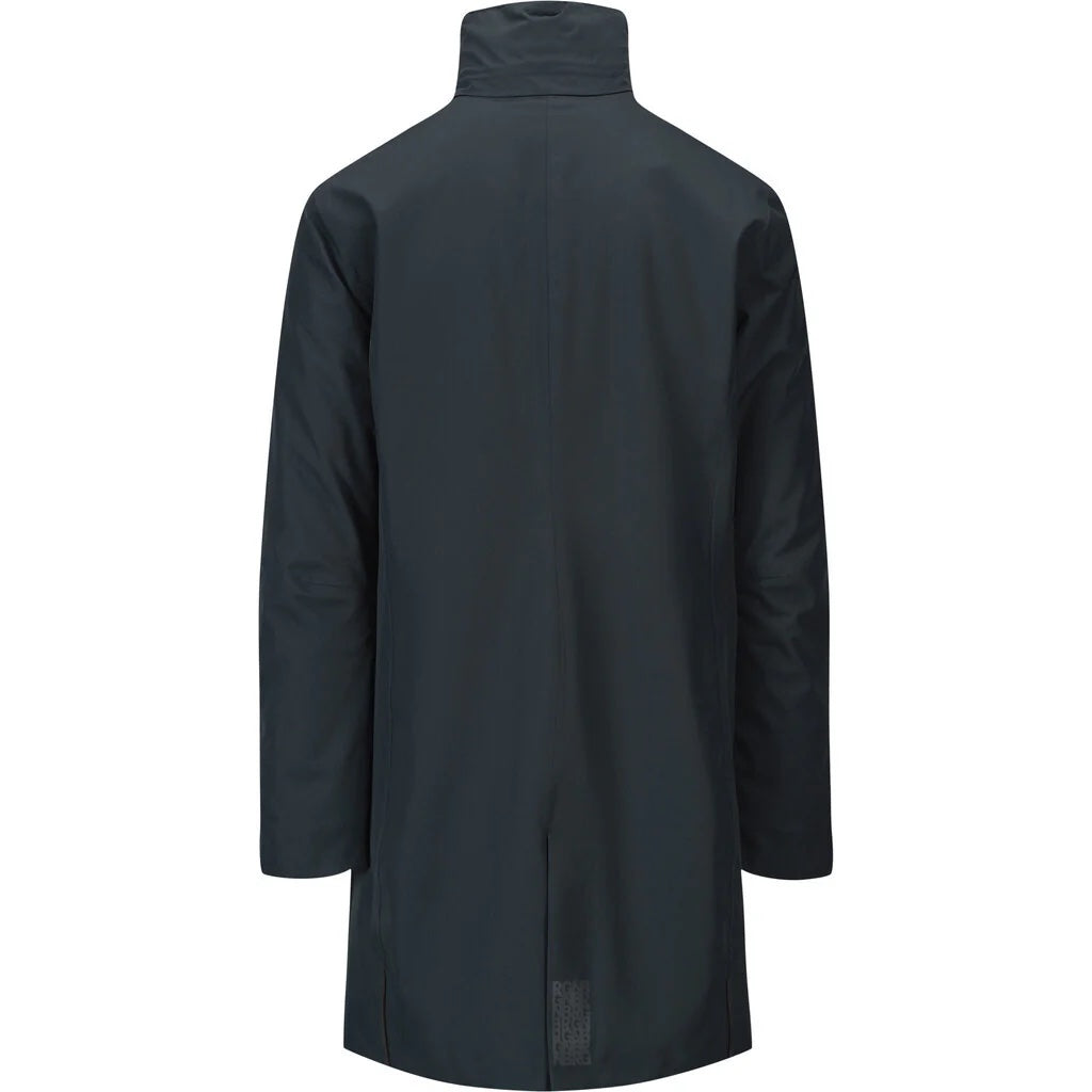 Sludd'n Coat i Dark Navy er ei vanntett regnjakke for menn med klassisk og rett passform laga i resirkulerte tekstiler. Denne kåpa er ei utvikling av den klassiske Sludd Coat , no kjem den med hette inni kragen, litt kortere krage enn Sludd og refleksdetaljer. Kåpa har eit glattere stoff enn originalen og ein liten BRGN-logo på brystet.