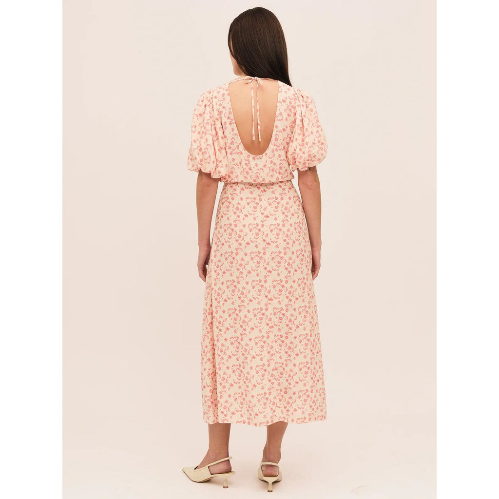 Athilda-kjolen er den perfekte sommerkjolen. Denne kjolen har eit delikat blomstertrykk, ein rund hals og ein knytedetalj med åpen rygg for ein sofistikert touch. Dei korte, oppblåste ermene og den utsvingte kanten skaper en flatterende silhuett.
