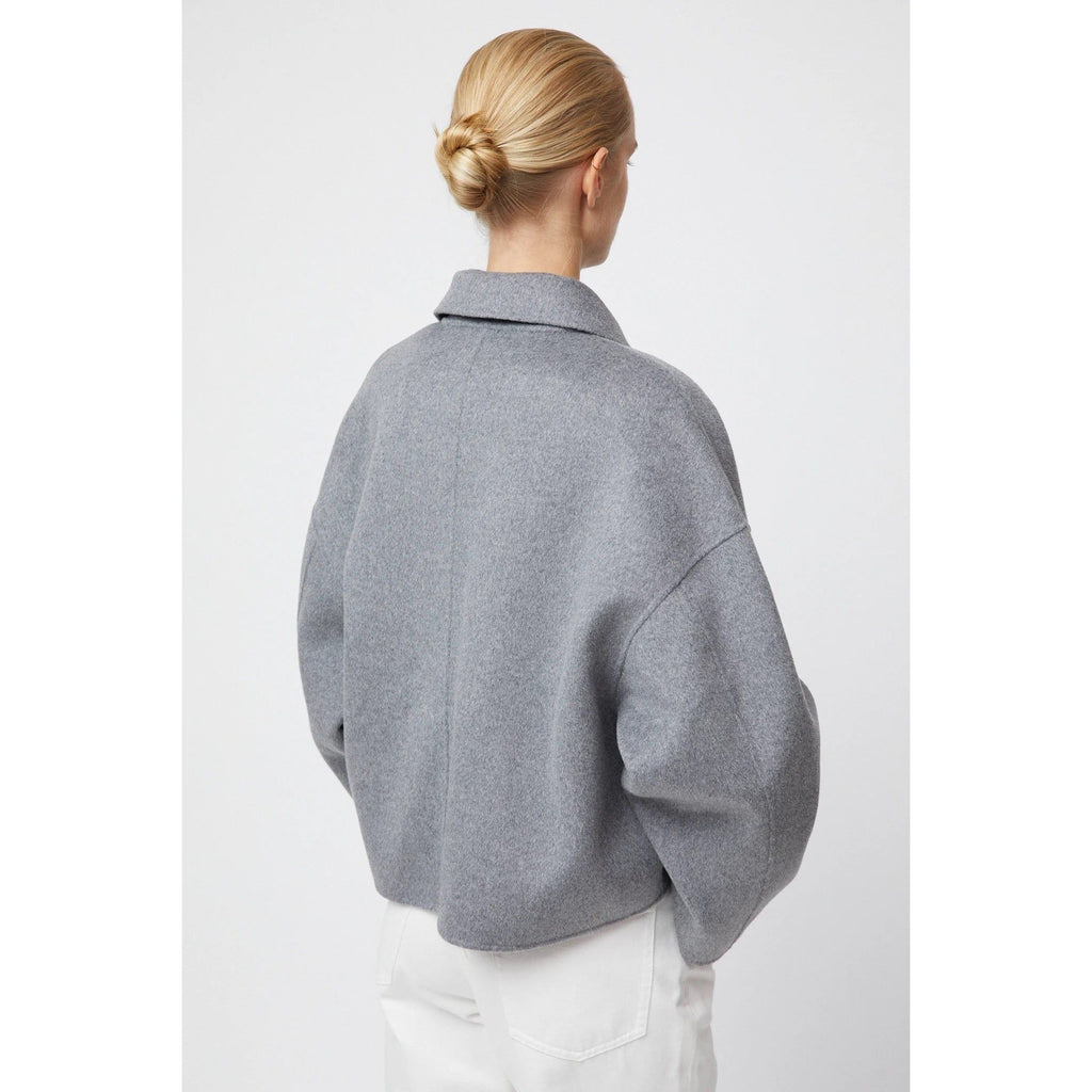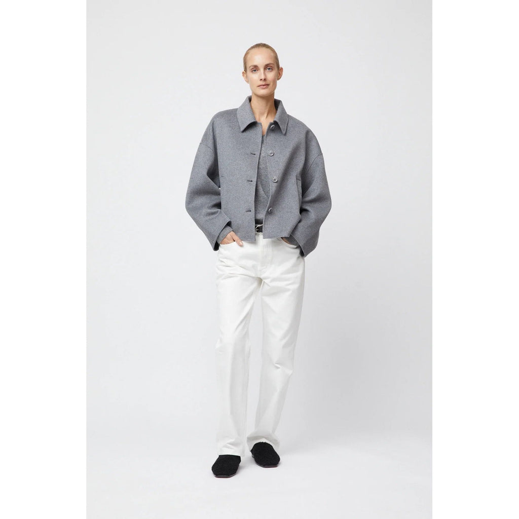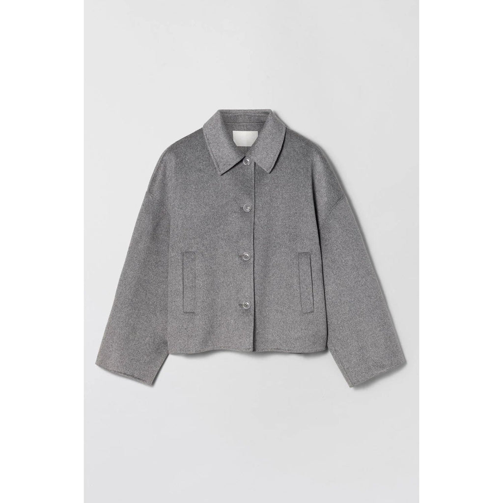 Det tette ullstoffet sikrer at du holder deg koselig samtidig som du ser stilig ut. Designet med ein litt avskåret kropp og lange kokongformede ermer, har denne jakken ein knapp foran og ein preppy krage, som gir ein forhøyet touch til den klassiske silhuetten.