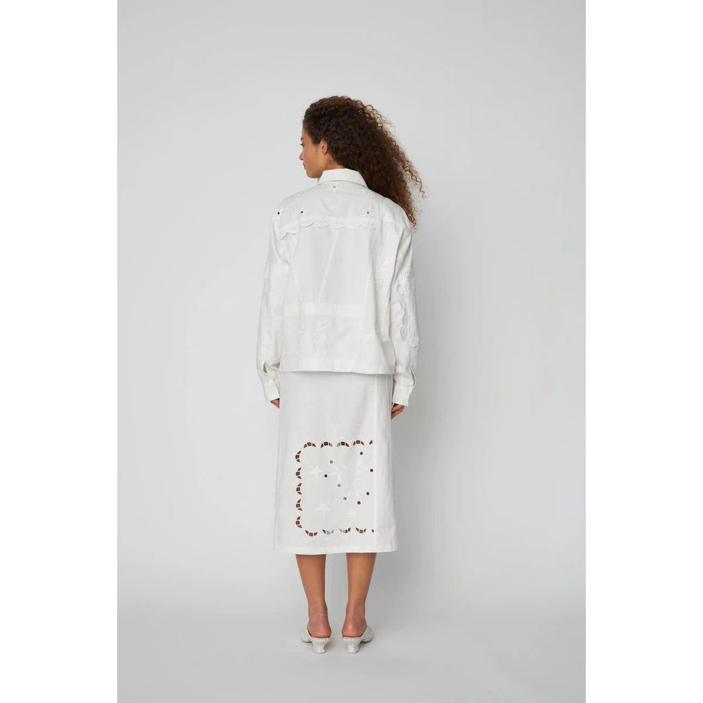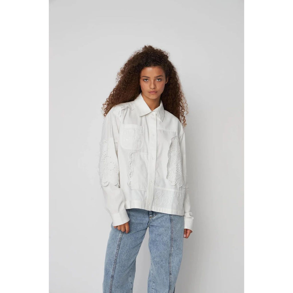 Skjorte med laus passform og broderte detaljar. Klassisk krage, knappelukking og broderte lommer.