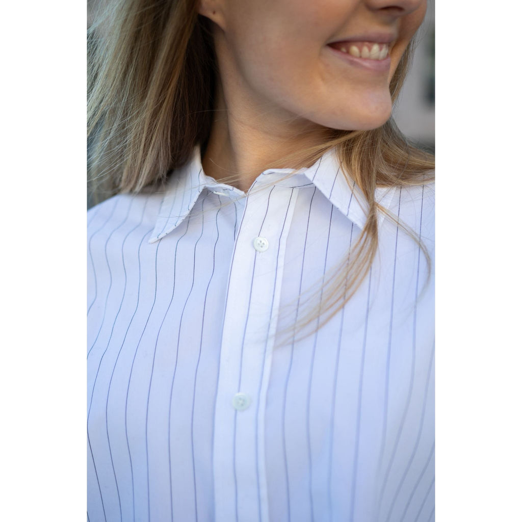 Skreddarsydd i mjuk bomull av høg kvalitet, med sesongens nye stripe. Skjorta har ein lett boxy fasong, knapp-ned krage og eit reint, gjennomført snitt som gjer den både komfortabel og stilfull.