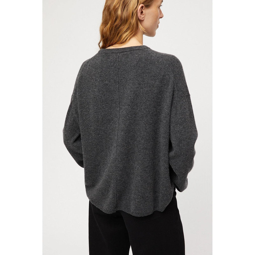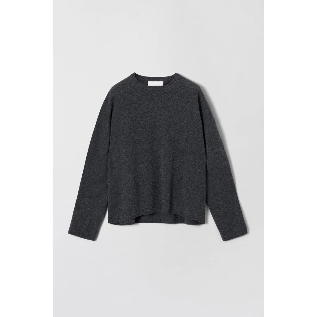 Strikka i ekstrafin, børsta merinoull for ein supermjuk og luksuriøs finish. Genseren har ei lett oversize, kokongforma silhuett som gir eit moderne og behageleg uttrykk. Med raffinert rund hals og fullt forma detaljar bak, er dette eit løfta basisplagg du vil bruke igjen og igjen.