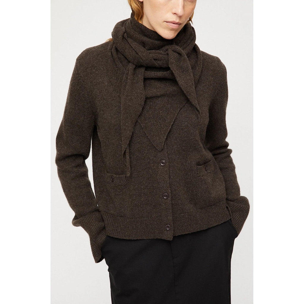Strikka i supermjuk, ekstrafin merinoull, har dette trekantforma skjerfet eit lett og elegant uttrykk. Det kan draperast over skuldrene, surrast rundt halsen eller knytast i livet – eit subtilt, men særprega plagg som løftar ethvert antrekk.