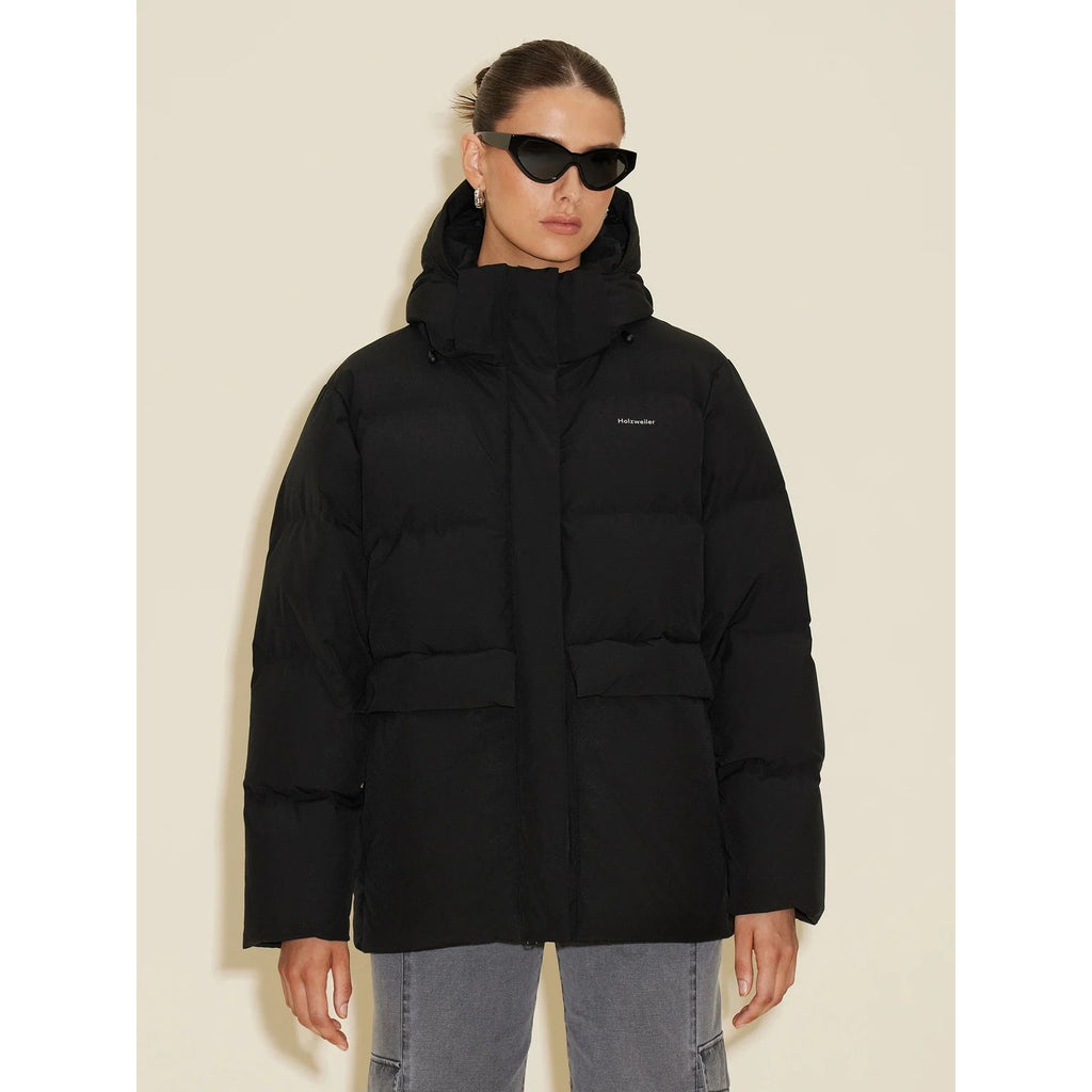 Fresh kort dunjakke fra Holzweiler! Chunky modell, som er rett og fin i fasongen. Den har avtagbar hette med snøring og lommer i sidene.