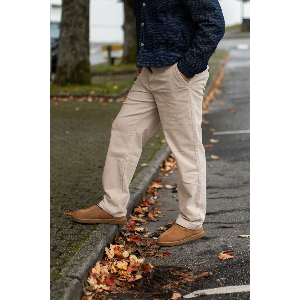 LucasPL er bukser med rette bein. Minimalt detaljert med synlige sømmer på innersøm og lommer, den enkle stilen har passpolerte baklommer.