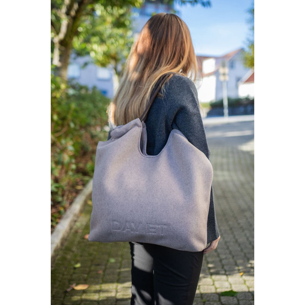 Elegant og funksjonell totebag i mjukt ullmateriale med plass til ein 15” laptop. Lukkes med trykknapper og har innvendig glidelåslomme for småting. Handtaka i kunstlær med knutedetaljar gir veska eit diskret, men særprega uttrykk.