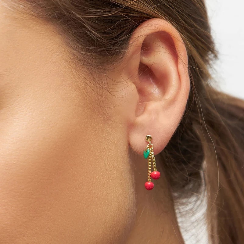 Med CHERRY fĂ„r du smaken av sommar â i smykkeform. Ăredobben er designa som eit kirsebĂŠr, med den ikoniske LOVE U-hjarta som blad og kjedar som stilkar â ei frisk og original tolking av eit klassisk symbol.