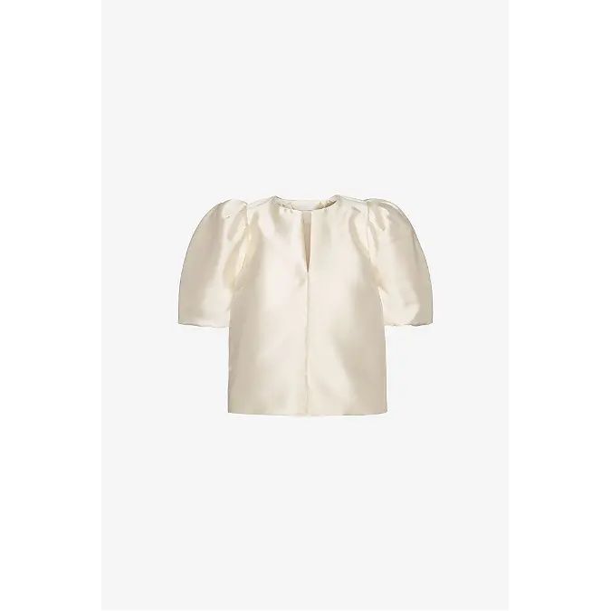 Luftig og elegant bluse med laus passform, designa for komfort og stil. Blusen har ein smal V-hals som gir eit reint uttrykk, og voluminøse ermar som stoppar like over albuen.