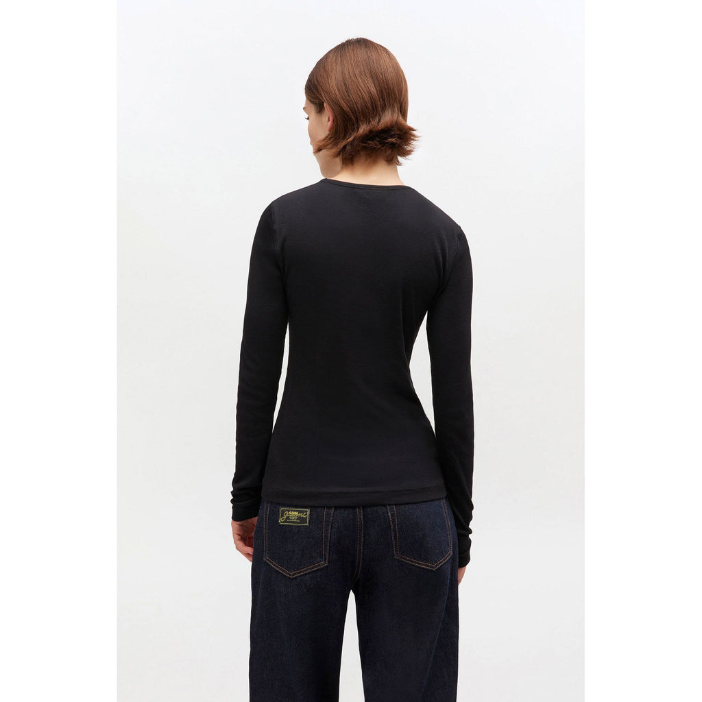 Denne toppen har rund hals, lange ermer og GANNI-logo.