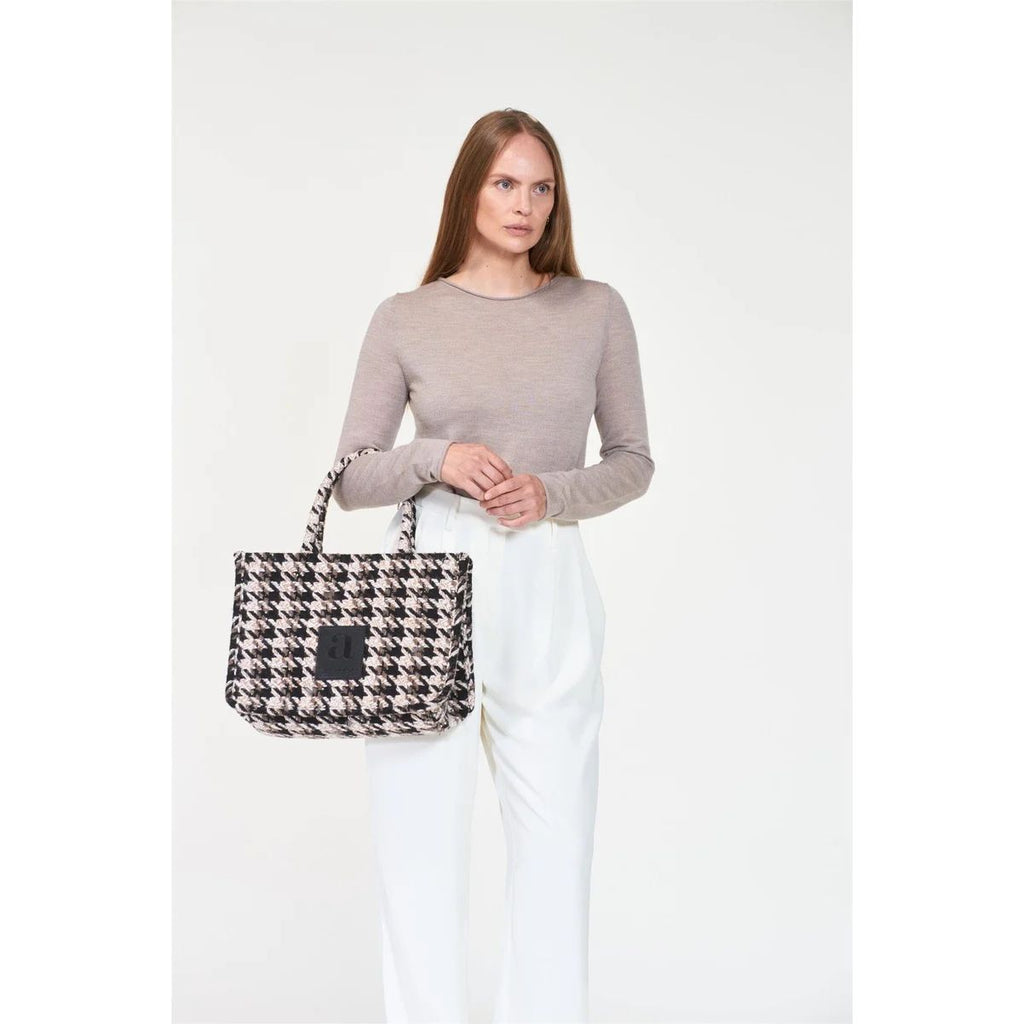 Romsleg skulderveske med elegant tweedmønster og magnetisk lukking. Eitt stort hovudrom, to sidelommer og ei glidelåslomme gjer det enkelt å halde orden.