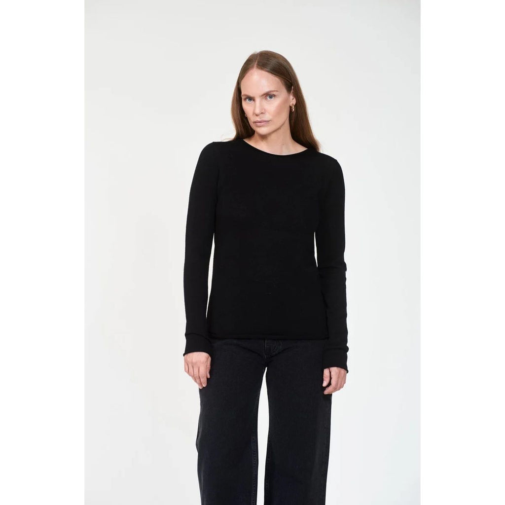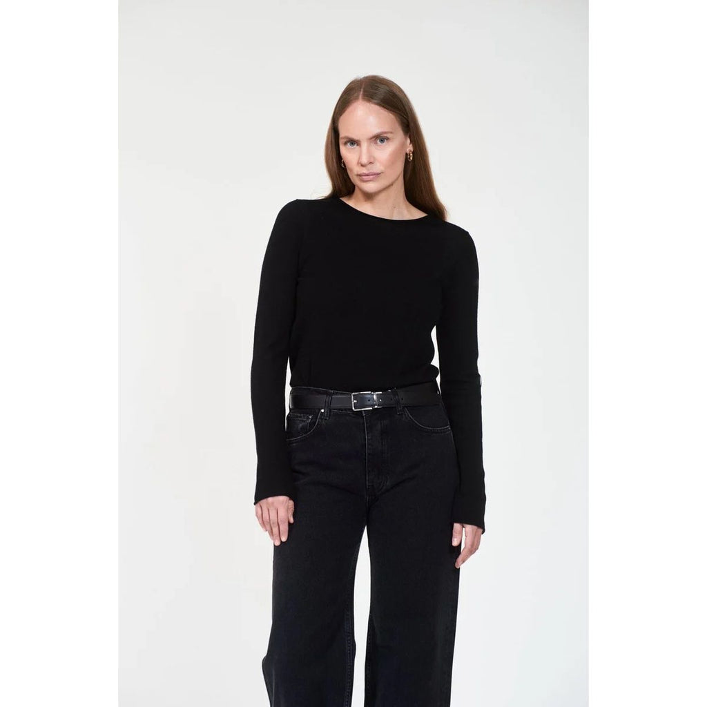 Klassisk, rett fasong med smale ermer som gir eit reint og tidlaust uttrykk. Detaljert med rullekant ved hals, mansjettar og nederste kant.