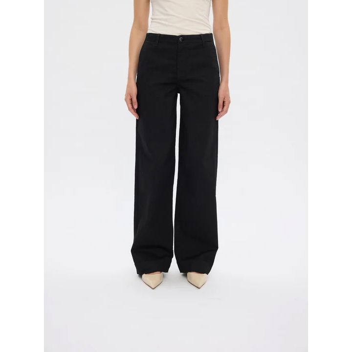 EricaFV er ei avslappa bukse med reint uttrykk, oppbygd linning med beltestroppar og glidelås med knapp. Den har rette, vide bein og subtile detaljar som stikksaum og påsette baklommer.