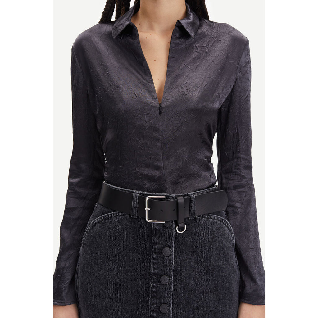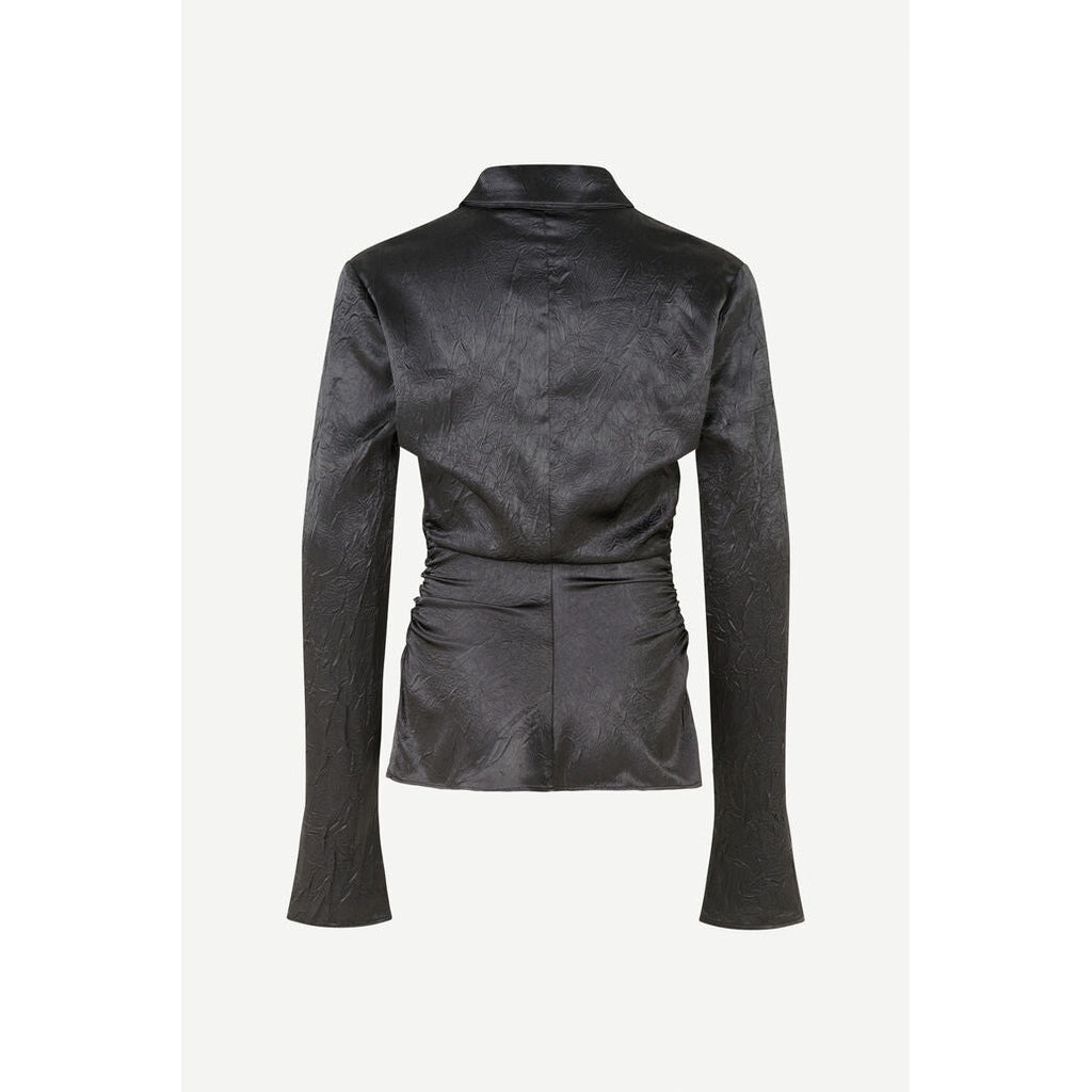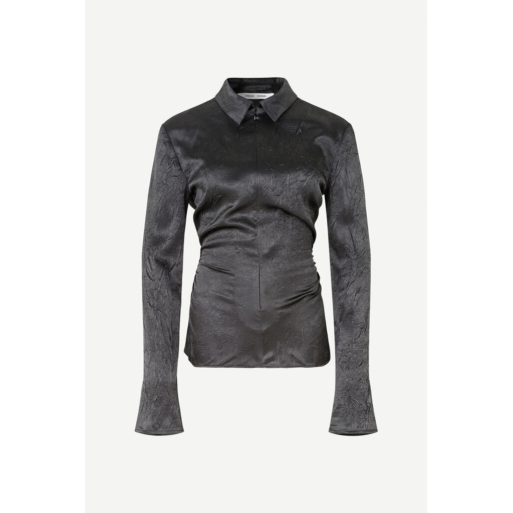 Slim fit bluse med spiss krage og usynlig glidelåslukking midt foran.