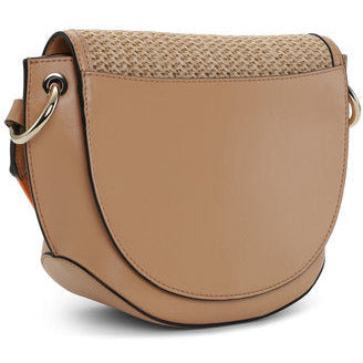 Vesken har tre rom, innvendig lomme med glidelås, klaff laga av raffia, skulderreim med hint av raffia og ein håndlaga fletta GANNI logo.