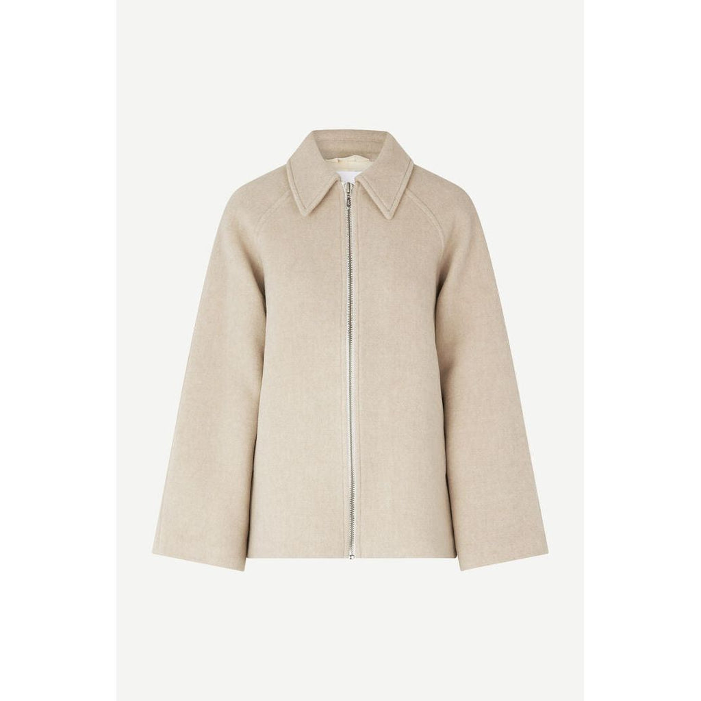 Boxy-fit jakke fra Samsøe med spiss krage og glidelås foran.