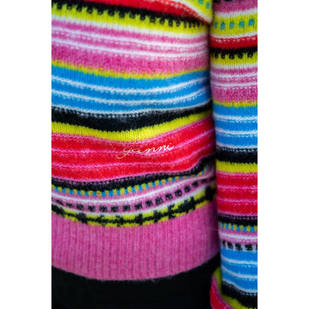 Designa i ein vanlig passform og har O-hals, stripete trykk, ballongermer, ribbete kanter og ein brodert GANNI-logo.